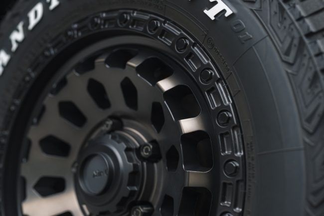 這款輪轂尺寸與Nomad相同,突出了凹面設計,但Vulcan的機械輻條式輪面更具吸引力。輪胎規格為LT225/70R16,比Sierra小一號,型號為鄧祿普Grandtrek R/T01,兼俱全地形(A/T)及泥地(M/T)性能。這項選擇也與Nomad的市場定位相符。