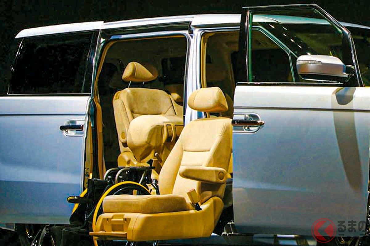 最大特色在於能實現快速且便利上下車的專用機構。透過遙控操作,駕駛座電動Swing Door與Power Sliding Door會自動開啟,方向盤會大幅向上傾斜抬起,同時駕駛座也會從車內下降至車外。