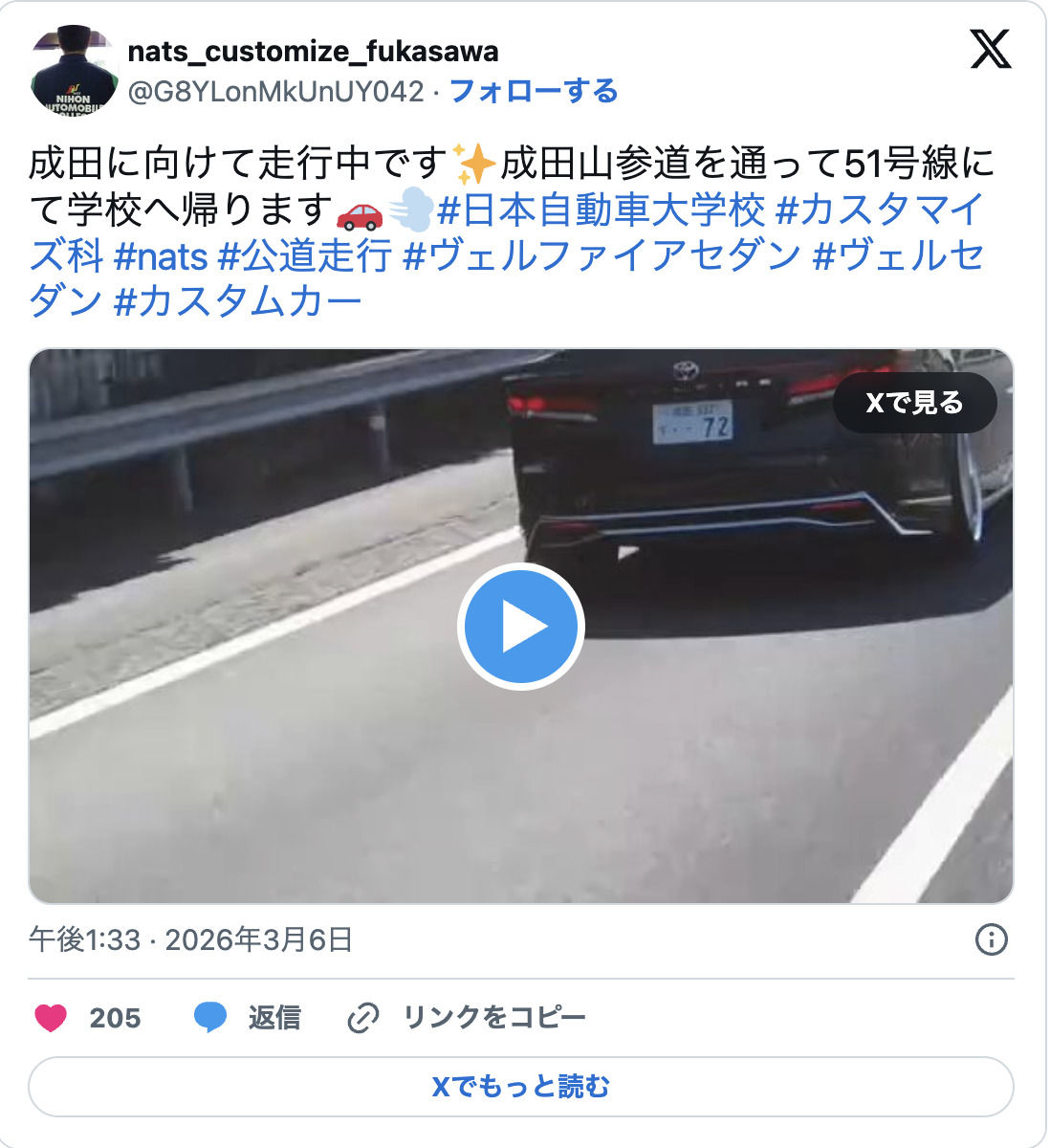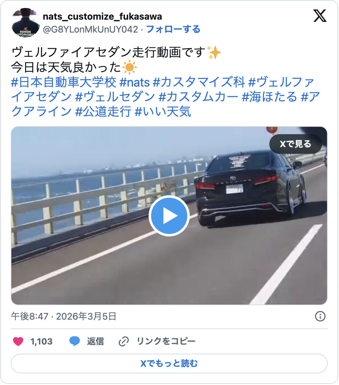 斬新「ヴェルファイア・セダン」“走行シーン”に反響殺到!(画像提供:日本自動車大学校カスタマイズ科 公式SNS)