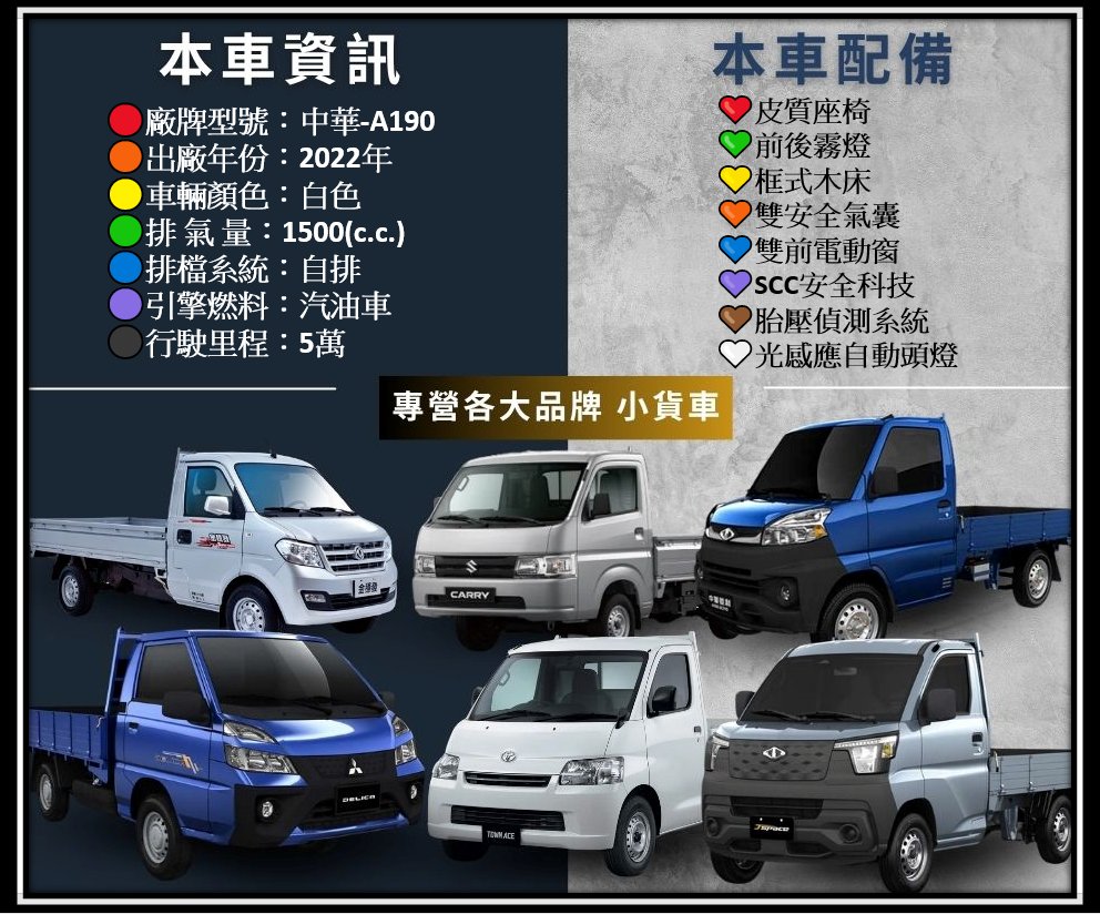 2022年 中華 A190 菱利貨車 雙安全氣囊+2.5尺升降尾門 『自排』好駕馭~工作開車輕鬆 框式木床,省油省稅金,輕商首選