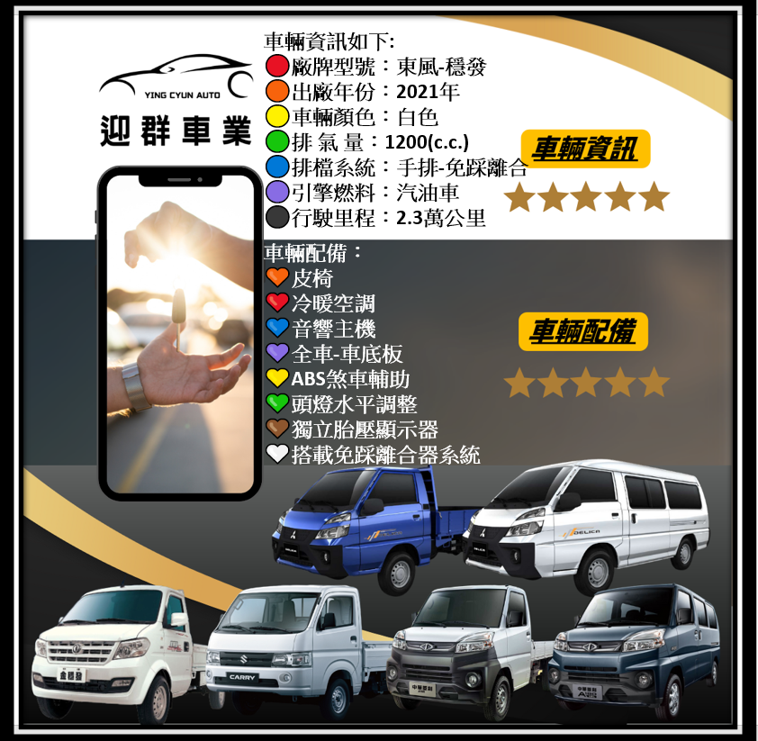 2021年 東風穩發 長鐵床貨車 超低里程~年均里程5750公里 搭載免踩離合器系統+三面掀帆布 大單廂+座艙大空間~經濟實用商用車
