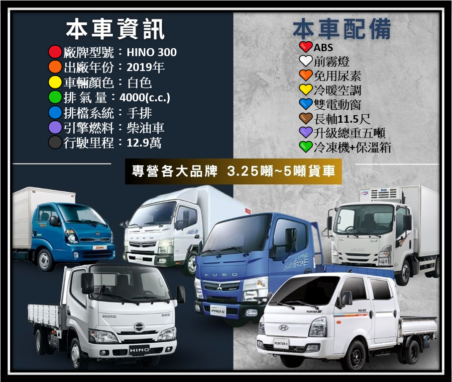 2019年 HINO 11.5尺 冷凍車 免使用尿素+已升級總重5噸 同級車中扭力最大~原廠保養 低里程~物流運輸業第一首選