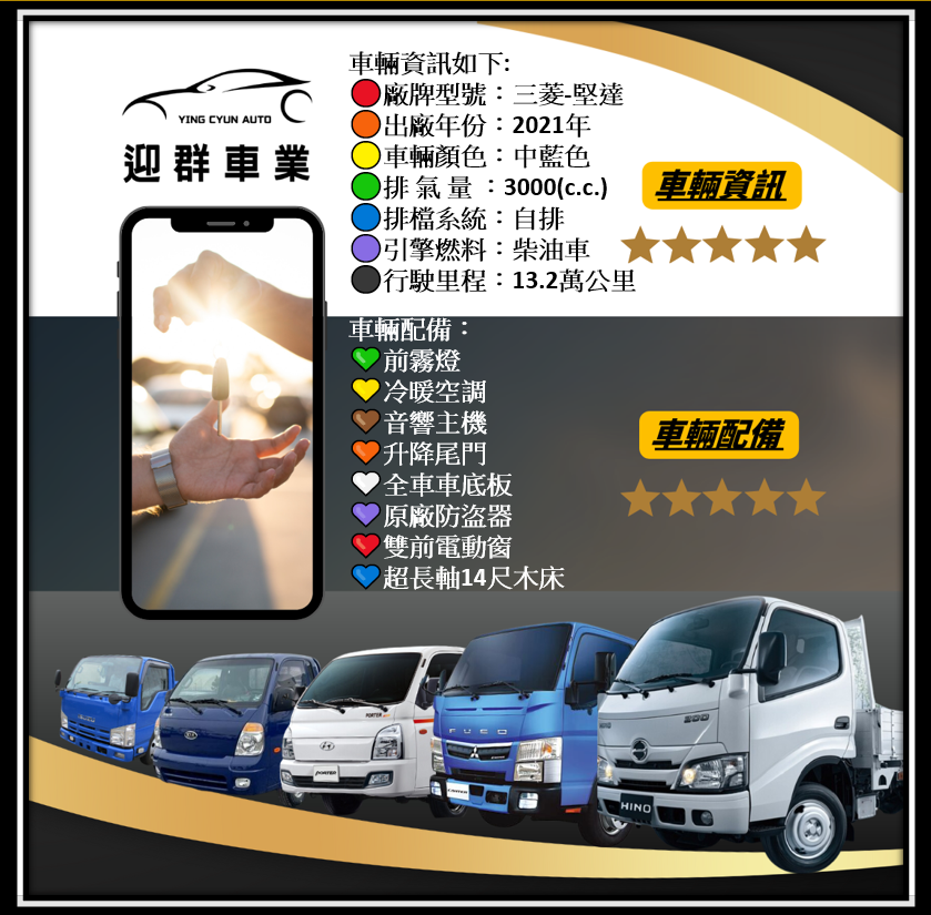 2021年 FUSO 堅達 14尺 貨車 框式木床車型+升降尾門 載重正5噸+末代免加尿素 四錄環景鏡頭~全車車底板 工作賺錢好幫手 商用運輸首選